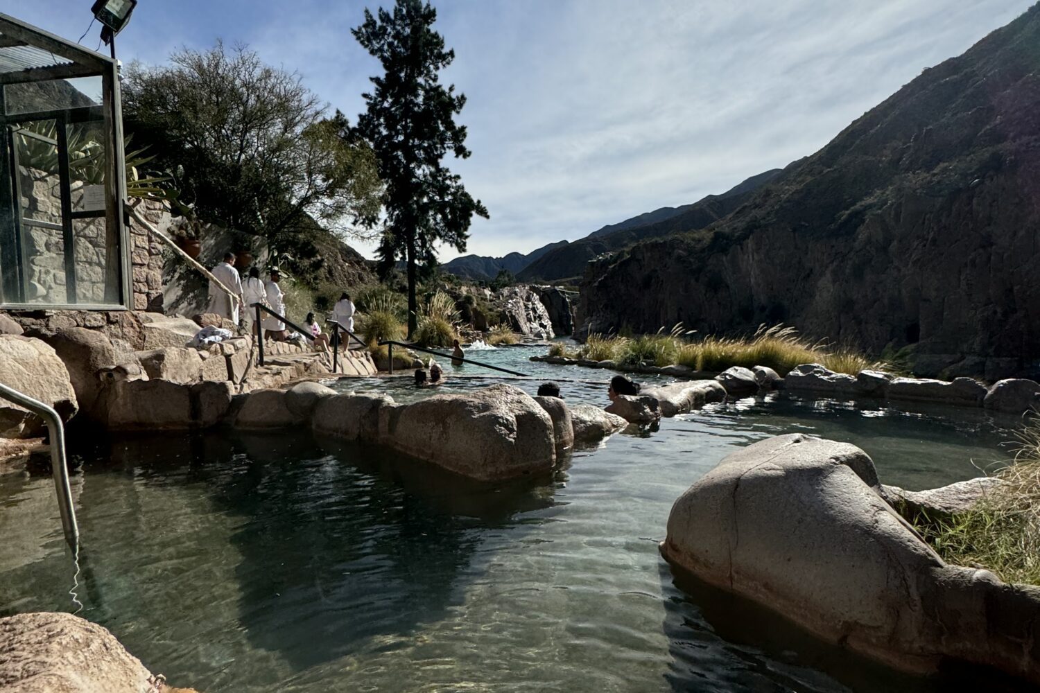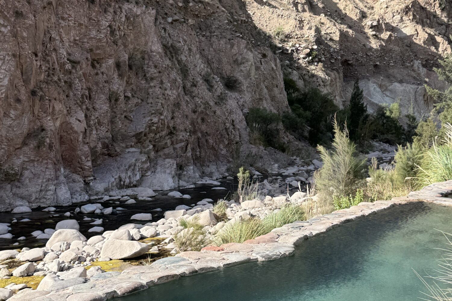 Enjoy a full day of relaxation in an unparalleled mountain setting. The Hotel & Spa Termas Cacheuta opens its doors to all tourists to enjoy its exclusive TermaSpa. We invite you to direct contact with nature alongside the Mendoza River, where you will find more than 10 stone pools with various hydrotherapies. The Thermal Water is 100% natural and mineralized, found in each pool at different temperatures, ranging from 20 to 43 °C. The experience includes the use of Fango Therapy (mineral mud) and the Grotto (a natural vaporarium unique in Argentina). At noon, you will delight in a delicious Creole buffet lunch served in the hotel restaurant with panoramic views.